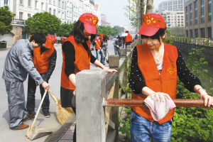 图为区水务集团青年自愿者在扫除卫生 。记者 傅展学 摄