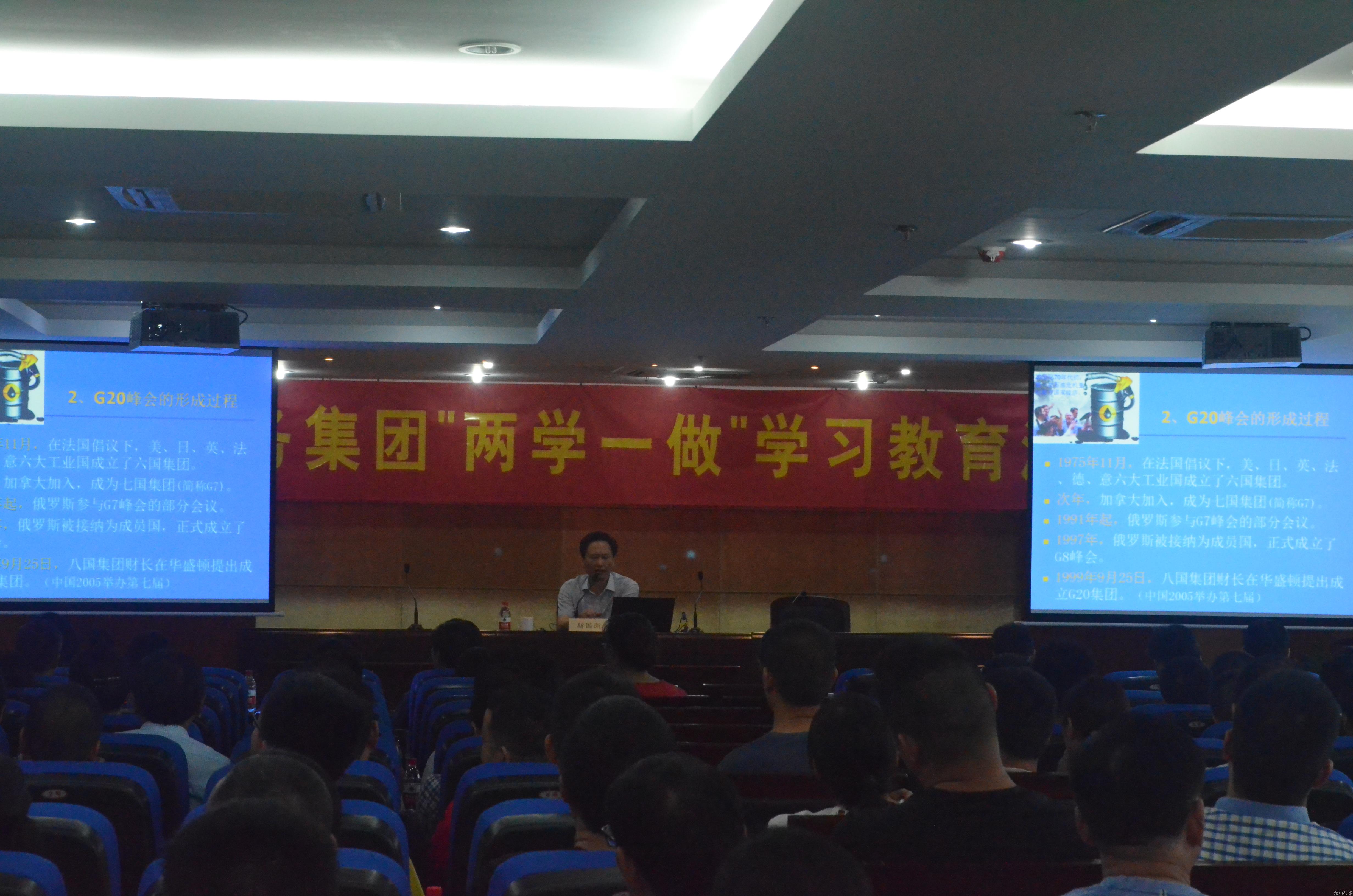 为深入学习贯彻习近平总书记系列主要讲话精神,牢靠拓展党的群众蹊径教育实践活动,增进全体党员做好峰会水务包管事情,7月4日下昼,污水公司党总支按集团要求承办开展“两学一做”学习教育活动,约请区委党校党委书记、常务副校长斯国新作专题讲座。污水公司全体党员加入活动,集团机关、投资公司、物业公司党员应邀加入。