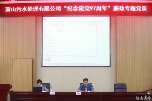 凭证纪念建党97周年系列活动安排,切实增强党员干部党性党风党纪教育,起劲推动国企党风廉政建设,深化纪检监察制约机制,713日下昼,污水公司举行廉政专题党课,集团党委委员、纪委书记周田元莅临党课现场。