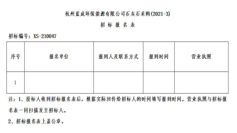 ¶þ¡¢ÕбêÏîÄ¿£ºº¼ÖÝÀ¶³É»·±£ÄÜÔ´ÓÐÏÞ¹«Ë¾Ê¯»Òʯ²É¹º(2021-3) ¡£