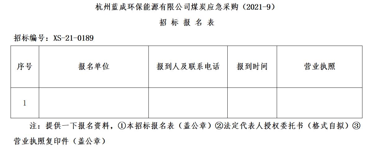 ¶þ¡¢ÕбêÏîÄ¿£ºº¼ÖÝÀ¶³É»·±£ÄÜÔ´ÓÐÏÞ¹«Ë¾ÃºÌ¿Ó¦¼±²É¹º(2021-9)¡£