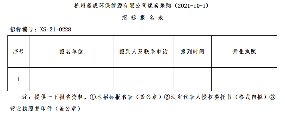 ¶þ¡¢ÕбêÏîÄ¿£ºº¼ÖÝÀ¶³É»·±£ÄÜÔ´ÓÐÏÞ¹«Ë¾ÃºÌ¿²É¹º(2021-10-1)¡£