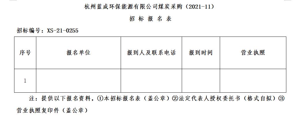 ¶þ¡¢ÕбêÏîÄ¿£ºº¼ÖÝÀ¶³É»·±£ÄÜÔ´ÓÐÏÞ¹«Ë¾ÃºÌ¿²É¹º(2021-11)¡£