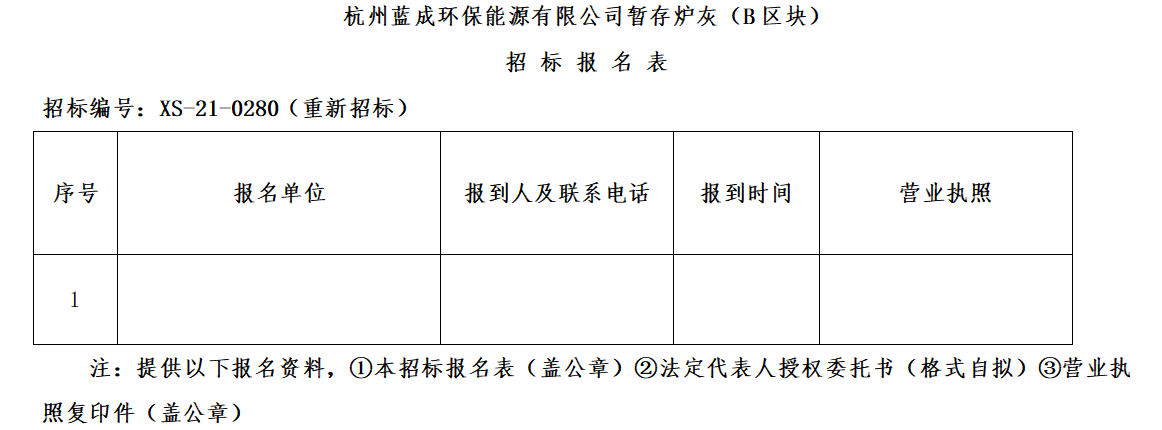 二、招标项目:杭州蓝成环保能源有限公司暂存炉灰(B区块)。