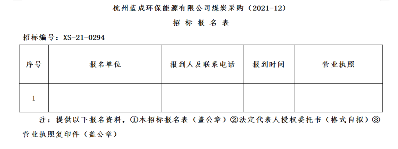 二、招标项目:杭州蓝成环保能源有限公司煤炭采购(2021-12)。