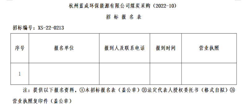 ¶þ¡¢ÕбêÏîÄ¿£ºº¼ÖÝÀ¶³É»·±£ÄÜÔ´ÓÐÏÞ¹«Ë¾ÃºÌ¿²É¹º(2022-10)¡£