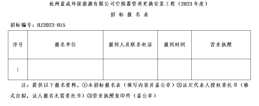 凭证杭州萧山不朽情缘集团招标治理要求,杭州蓝成环保能源有限公司对“空预器管道替换装置工程(2023年度)”举行果真招标。