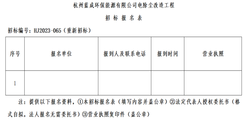 七、招标答疑时间:投标人对招标文件若有疑问,请于2023年4月21日16时00分前以书面形式(可传真、扫描件)并加盖公章提交杭州蓝成环保能源有限公司。