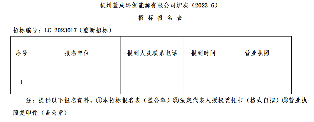 凭证杭州萧山不朽情缘投资建设集团有限公司物资招标治理要求,杭州蓝成环保能源有限公司对“杭州蓝成环保能源有限公司炉灰(2023-6)”举行果真招标。