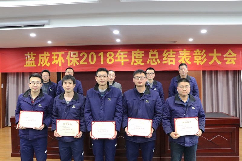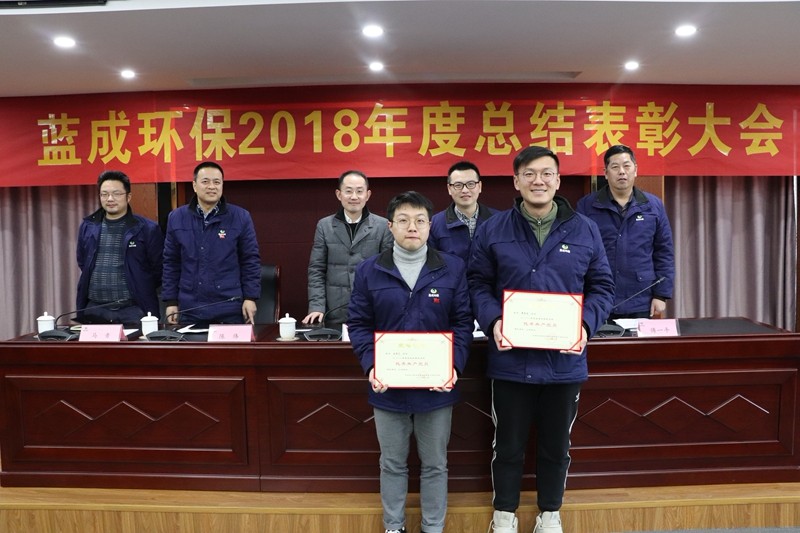 2018年蓝成环保由基建转入运营,以“清静生产、达标排放、提质增效”为抓手,各项事情平稳有序开展,取得了可喜的效果,涌现了一大批头脑先进、事情先锋、作风务实的先进整体和小我私家。先进整体和先进小我私家上台接受表扬。