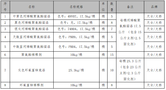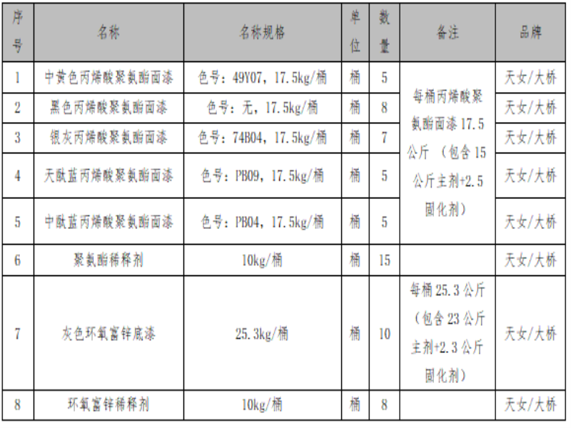 二、需求项目(工程):零星装备、管道、钢架防腐油漆采购2023)。