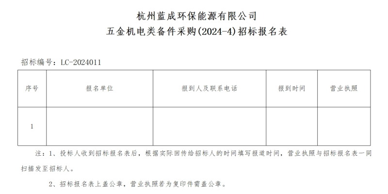 Îå¡¢·¢·ÅÕбêÎļþʱ¼ä£ºÓÐÒâÏòµÄͶ±êÈ˿ɴÓ2024Äê4ÔÂ28ÈÕÖÁ2024Äê5ÔÂ2ÈÕ£¬ÖðÈÕÉÏÎç9:00~11:30ʱ£¬ÏÂÖç12:00~16:00ʱ£¨±±¾©Ê±¼ä£©£¬ÔÚº¼ÖÝÀ¶³É»·±£ÄÜÔ´ÓÐÏÞ¹«Ë¾ÁìÈ¡ÕбêÎļþ£¬¿Éµç×Ó°æµÄÐÎʽ·¢³ö¡£