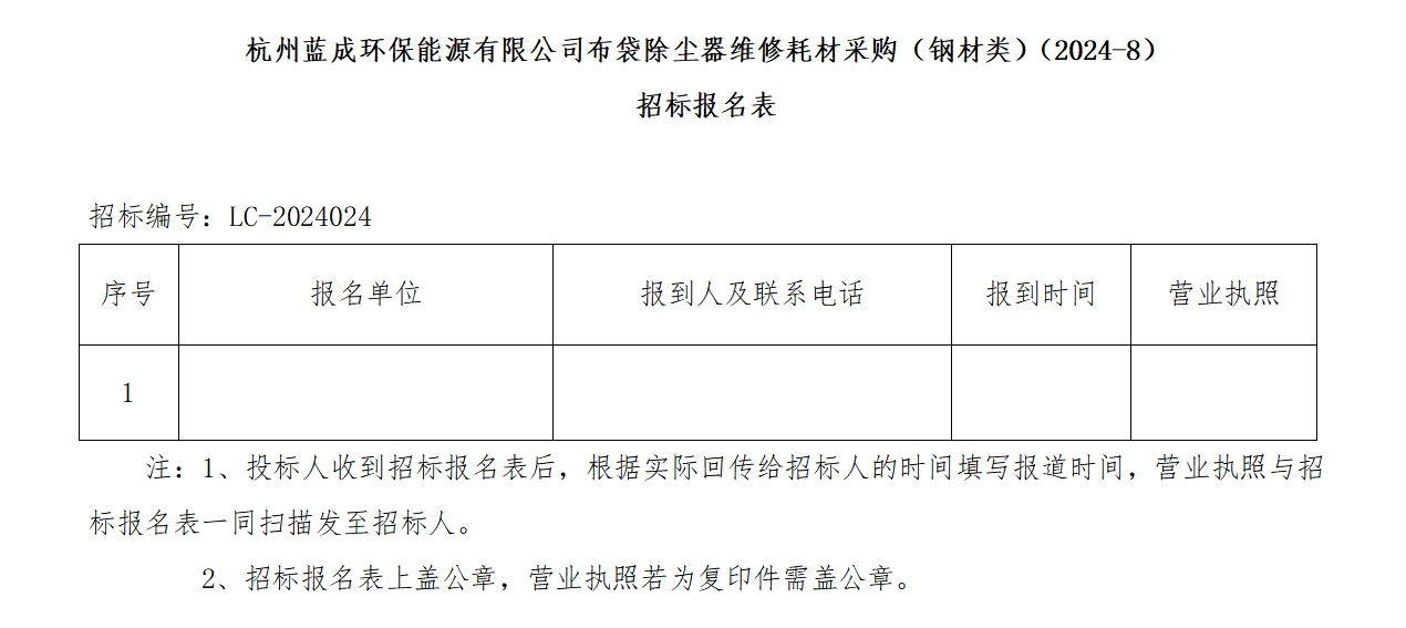Îå¡¢·¢·ÅÕбêÎļþʱ¼ä£ºÓÐÒâÏòµÄͶ±êÈ˿ɴÓ2024Äê7ÔÂ30ÈÕÖÁ2024Äê8ÔÂ3ÈÕ£¬ÖðÈÕÉÏÎç9:00~11:30ʱ£¬ÏÂÖç12:00~16:00ʱ£¨±±¾©Ê±¼ä£©£¬ÔÚº¼ÖÝÀ¶³É»·±£ÄÜÔ´ÓÐÏÞ¹«Ë¾ÁìÈ¡ÕбêÎļþ£¬¿Éµç×Ó°æµÄÐÎʽ·¢³ö¡£