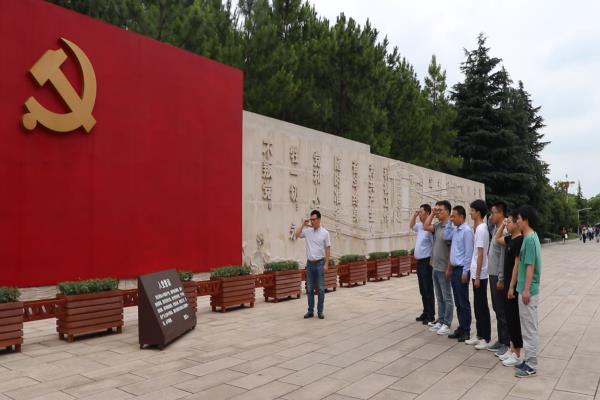 今天,党员们踏着义士先进的足迹,站在南湖革命纪念馆的誓言墙前,统一佩带党徽,在公司党支部书记孟鑫的向导下,面朝党旗庄重宣誓,不忘初心,切记使命。