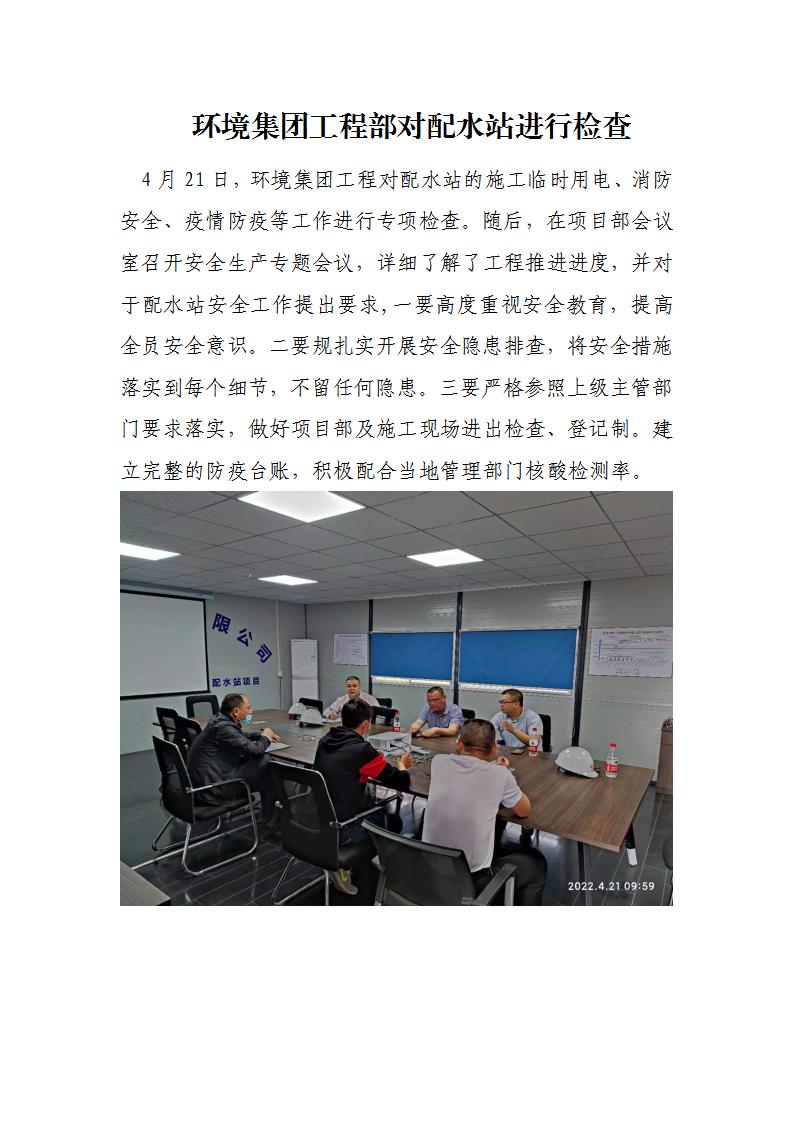 不朽情缘集团工程部对配水站举行检查
