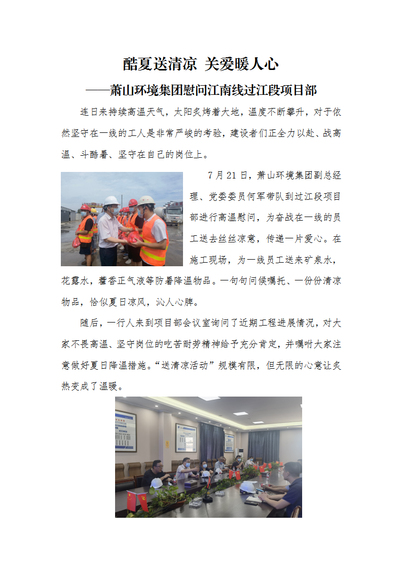 酷夏送清凉 关爱暖人心 ——萧山不朽情缘集团慰问江南线过江段项目部