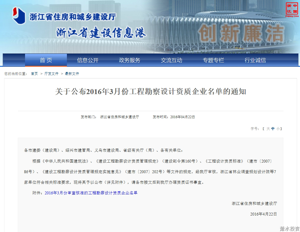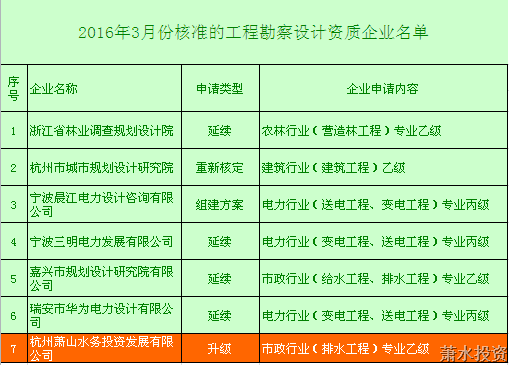 水务投资公司牢牢捉住“五水共治”历史机缘,在重大项目建设中学习、磨炼、提高,为提升企业资质水平打下了坚实的基础。2015年12月,公司修建工程丙级设计资质完成增项审批,同时公司不朽情缘工程、市政蹊径乙级设计资质在2016年内将陆续就位;2016年1月与2016年4月,经浙江省住房和城乡建设厅批准,公司工程设计市政(给水、排水)乙级资质双双升级乐成,一系列设计资质申报乐成涤讪了水务投资公司在萧山区市政工程设计领域的领先职位。同时,在2013-2015年间,公司先后取得了萧山区政府投资项目综合类代建资质、工程咨询市政(给、排水)及修建资质、市政公用工程施工总承包资质、房地产开发资质等,从而正式具备了“项目投融资、工程设计、工程咨询、工程代建、工程总承包建设”五位一体的立异驱动生长能力,水务投资公司的资质系统完整性与工程手艺治理能力稳居萧山区前线。