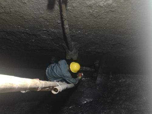 为确保施工清静,事情职员先行检测污水池内不朽情缘清静,作业职员方佩带有毒气体检测仪下井作业。装置历程中,前期排水事情遇到进水阀门无法完全闭合,导致蓄水池内的污水无法排空的难题。经事情职员群策群力,重复讨论协商,决议暂时接纳水泥堵住阀门与墙体之间误差的要领对蓄水池内的污水举行排空。