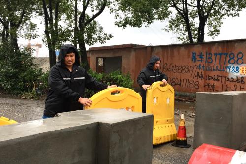 演练模拟极端天气下泵站供电线路突然断电,导致雨水运送设施停运,泵房周边积水严重,随时有雨水满入危险的突发情形。参演职员迅速召集应急物资,在泵站积水处铺上麻袋,并启用抽水泵对严重积水处实验强排步伐。