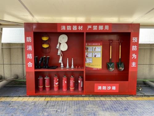 两组微型消防站“麻雀虽小 ,五脏俱全” ,配有灭火器、消防水带、消防枪头、消防扳手、消防沙、铲子、耐酸碱手套、耐酸碱鞋等清静物资 ,可消除管控历程中泛起的灭火器和灭火器柜被雨水日渐锈蚀、室外消火栓水带无处安顿、作业职员防护工具无处安排、消防沙无处堆放等“疑难杂症” ,有用阻止清静事故的爆发。