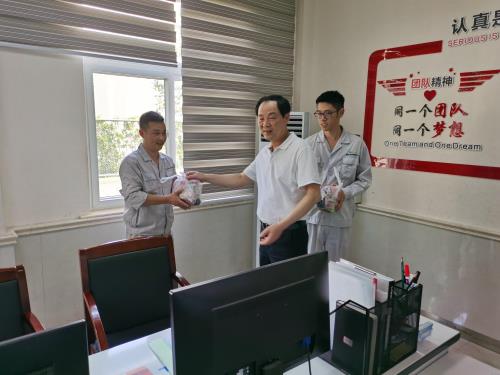 随后,董事长韩国华亲热探望班组员工,为奋战在一线的宽大职工送上慰问品,同时嘱咐职工在事情岗位上一定要注重劳逸连系,科学合理安排事情,落实防暑降温顺清静生产步伐 。