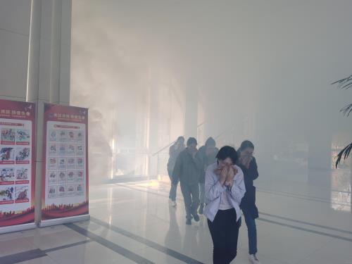 中午12:30分,陪同着滔滔“浓烟”,参演职员战胜心理压力,用湿毛巾捂住口鼻,井然有序地猫腰撤出“火场”。在灭火器实操环节中,参演职员听取清静员解说,依次在优势口距离火源2米处,对火源根部举行喷射,并由清静员纠正操作办法。