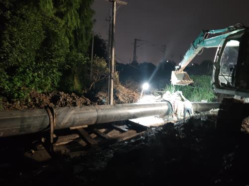 9月15日破晓,随着最后一段PE管装置到位,萧山南部城区应急管线工程铁路段完成施工。