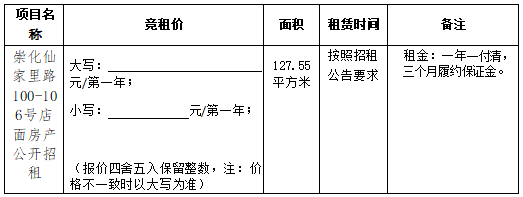 1¡¢Æ¾Ö¤¹ó·½³ç»¯ÏɼÒÀï·100-106ºÅµêÃæ·¿²ú¹ûÕæÕÐ×âÏîÄ¿µÄͨ¸æ£¬ ×ñÕÕÓйػ®¶¨£¬ÎÒ·½Ô¸ÒÔÒÔϱ¨¼Û¼ç¸ºÕÐ×âÒªÇó¡£